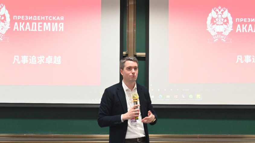 俄罗斯总统国民经济与公共管理学院副院长Evgeniy Itsakov在发言中通过宣传片展示了该校的校园风貌与发展成果,并对BIBS的热情接待表示感谢。他诚挚邀请bw必威西汉姆联师生未来访问莫斯科,进一步拓展双方合作空间。