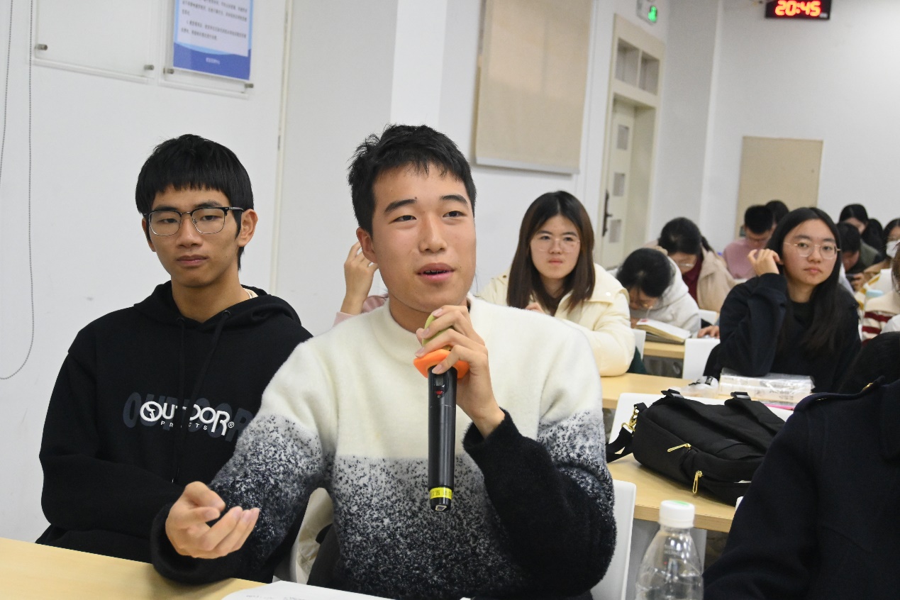 在“学长面对面”环节,王佳鑫老师首先为同学们做经验指导,介绍了学院本科生以及研究生的职业发展情况,激励同学们努力学习,勇攀高峰。