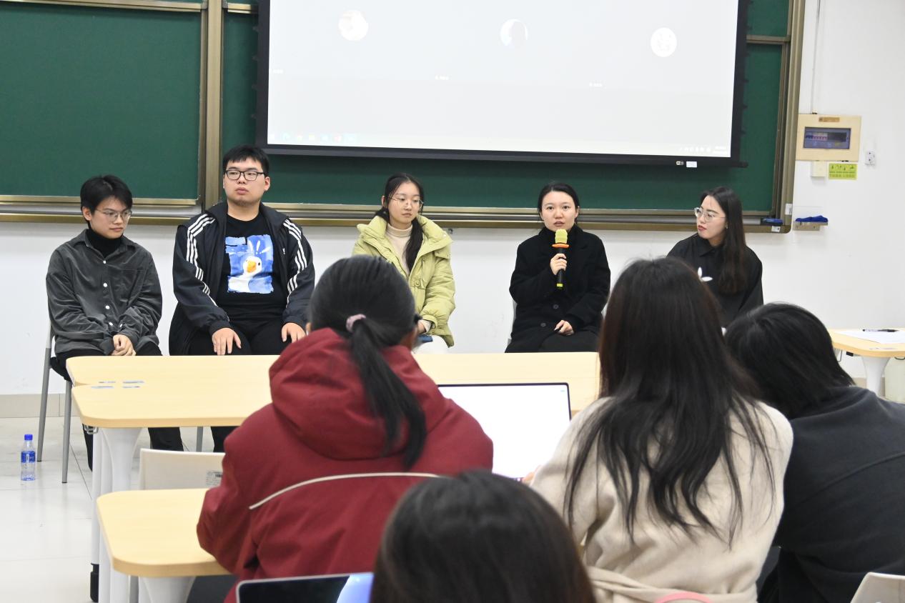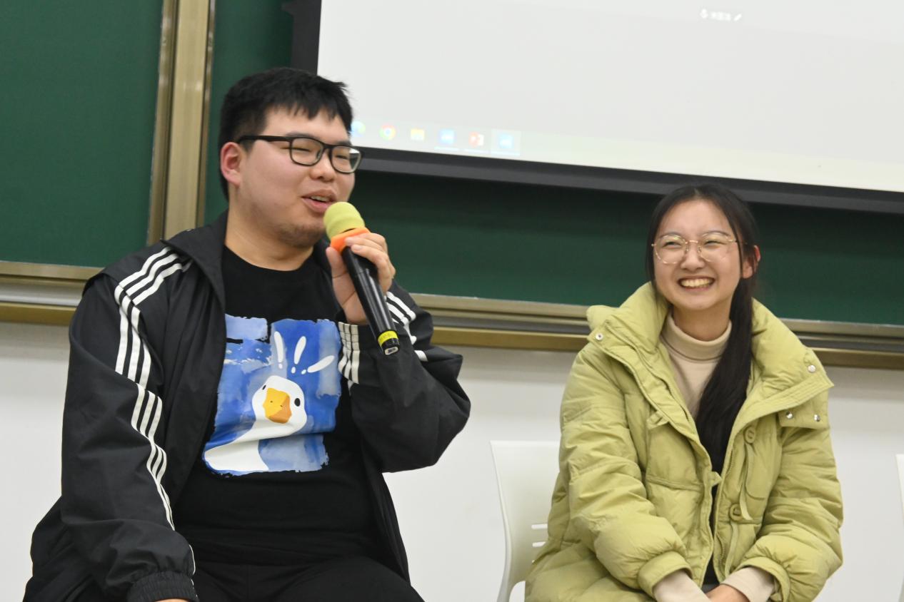 随后,2020级至2022级的多位优秀学长学姐纷纷亮相,既有邓琰章学长和周家云学姐保研成功的经验分享,也有张申然学长和赵资学姐的励志故事;线上的孙纪元学长无私传授考公心得,宋圣洁学长畅谈对专业选择的深入思考以及保持高绩点的秘诀,贺钰雯学姐则围绕保研准备倾囊相授,涵盖学生工作、社团活动与学科竞赛等实用技巧。