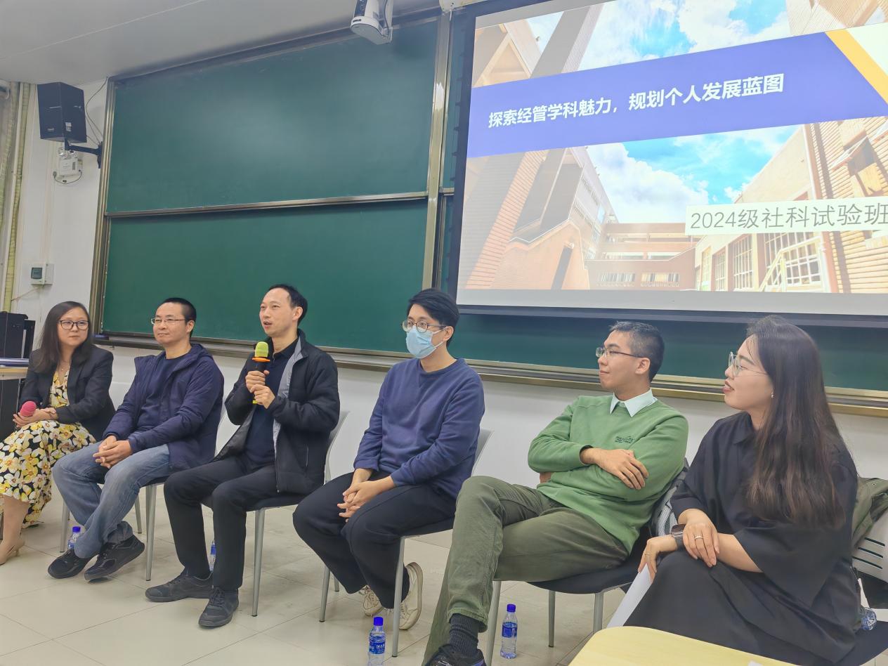 班会开场,学院老师们凭借深厚的学术造诣与丰富的教学实践,深入阐释了经济与管理学科的迷人之处、发展走向及其对社会的关键作用。他们以亲身经历为蓝本,讲述与经管学科的不解之缘,为同学们指引方向。