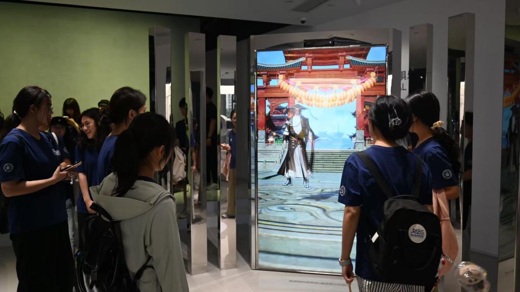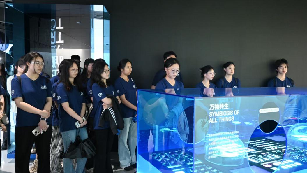 随后,师生们跟随工作人员的脚步,深入探访金山软件园的各个标志性区域。从承载着企业历史记忆的大堂,到展示前沿创新成果的展厅,再到洋溢着人文关怀的员工生活区域,每一处都蕴含着金山独特的文化底蕴与发展脉络。尤其在“明日之城”场景展览中,以高新科技、未来畅想、AI文化等为主题的丰富展品与交互式设施,让师生们沉浸式领略了金山一路走来的发展历程、独具魅力的企业文化,以及面向未来的宏伟愿景。