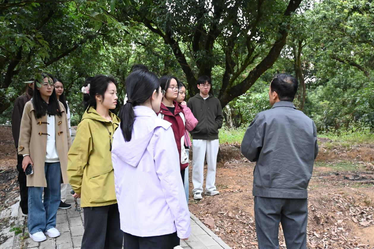 接着,师生们移步至美丽的高州根子镇贡园。贡园堪称中国荔枝文化的瑰宝,是目前全国范围内面积最大、历史最为悠久、保存最为完好,且古荔枝树数量最多、品种最为齐全的古荔园之一,故而被誉为“活的荔枝博物馆”。漫步其中,古荔树苍劲挺拔,仿佛在诉说着千年的荔枝种植历史,让师生们亲身领略到了大自然与农业文明的完美交融。