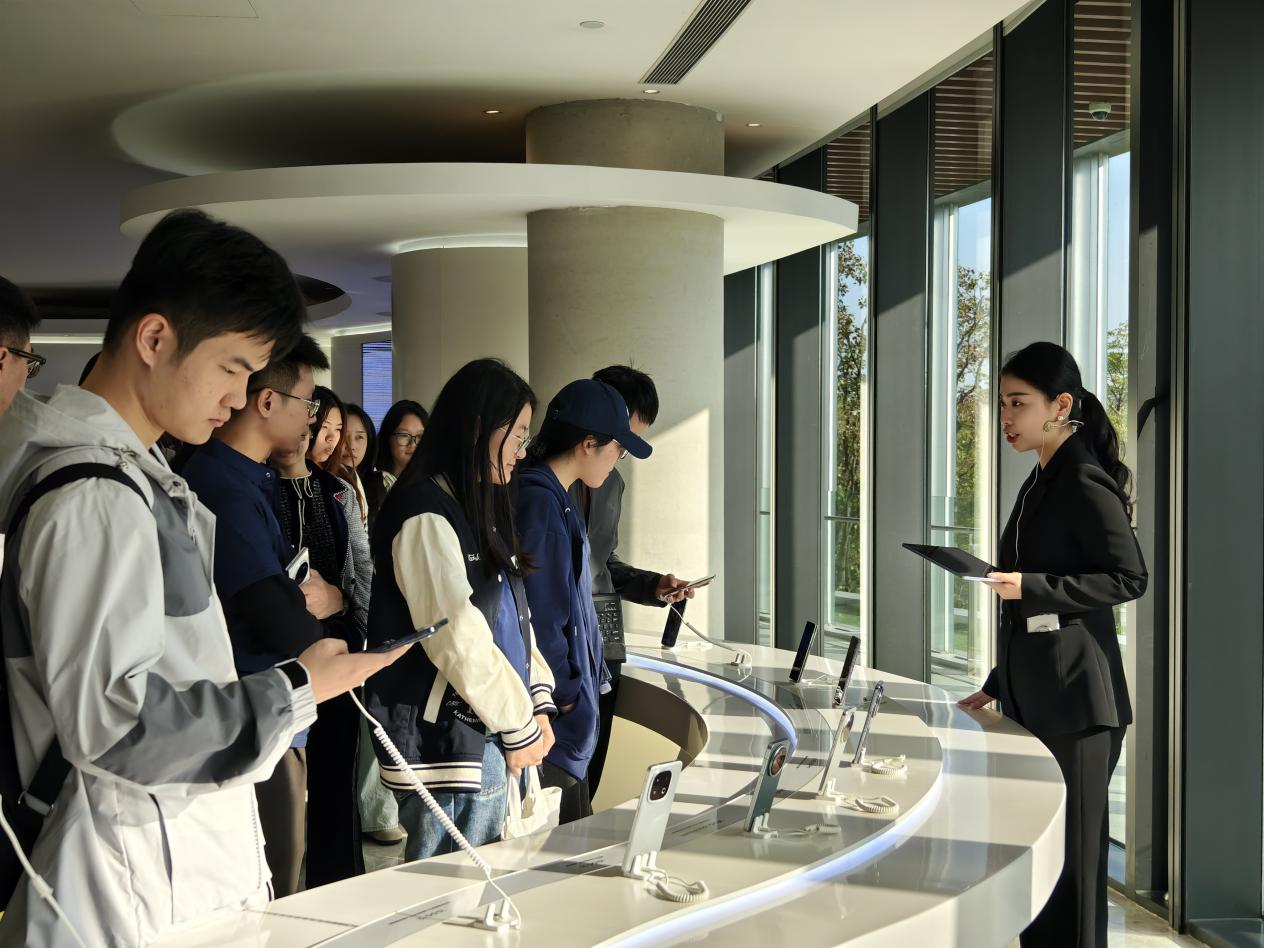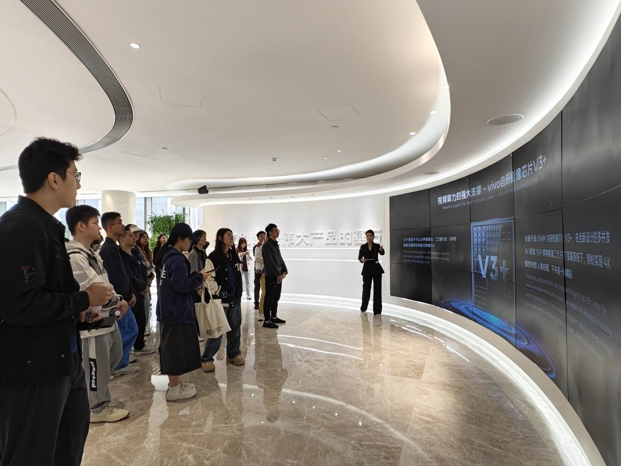 结束生产车间的参观后,在工作人员的悉心引导下,学院师生踏入了VIVO的品牌展厅。工作人员以详实且深入的讲解,全方位地呈现了VIVO的企业文化、发展历程以及发展战略,让师生们对VIVO有了更为全面而深刻的认知。作为一家以设计驱动创造伟大产品,以智能终端和智慧服务为核心的科技公司,VIVO始终坚定不移地秉持用户导向理念,持续加大产品与技术创新投入,矢志不渝地为消费者缔造更为优质、便捷的智能生活全新体验。