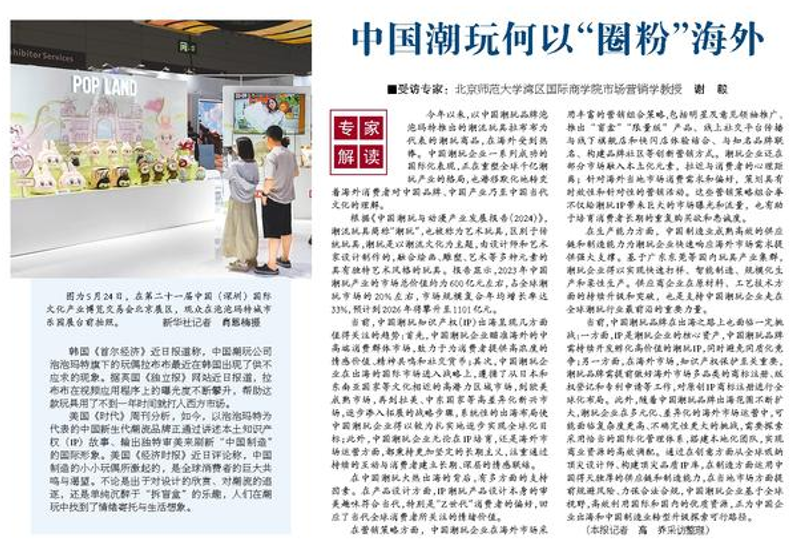 今年以来,泡泡玛特旗下核心潮玩IP“拉布布”(LABUBU)在韩国、欧美等海外市场持续热销,多地出现供不应求的火爆局面。韩国《首尔经济》、英国《独立报》、美国《时代》周刊等国际主流媒体相继报道,称以本土IP和独特审美为代表的中国潮玩,正刷新全球消费者对中国品牌的认知。本期“湾商视点”特邀bw必威西汉姆联谢毅教授,深度解读中国潮玩出海背后的逻辑与启示。
